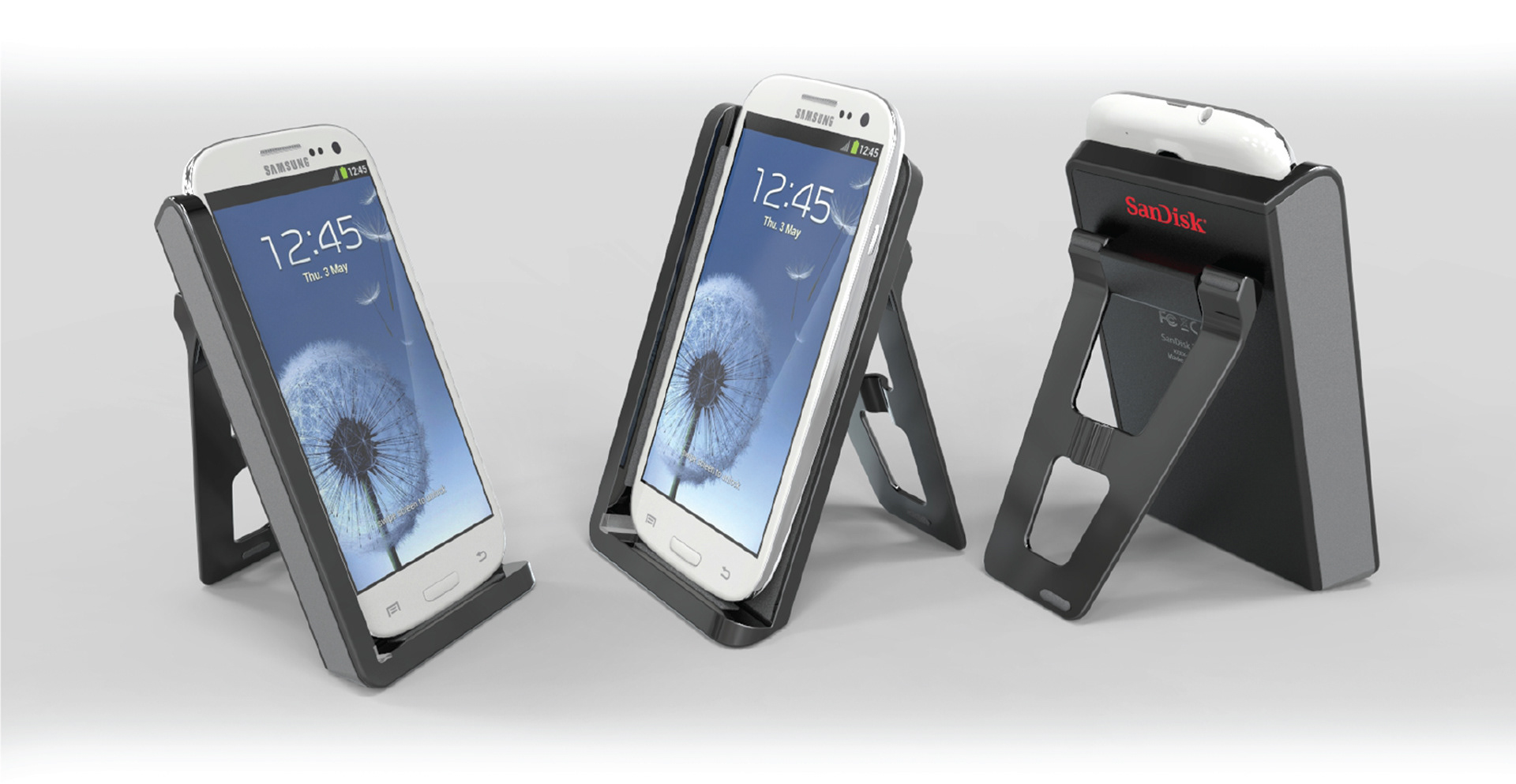 The SanDisk Wireless Qi charger allows users to easily charge their phone both vertically or horizontally. The integrated "L" shaped rubber stopper positioned the charging coil into the optimal position.